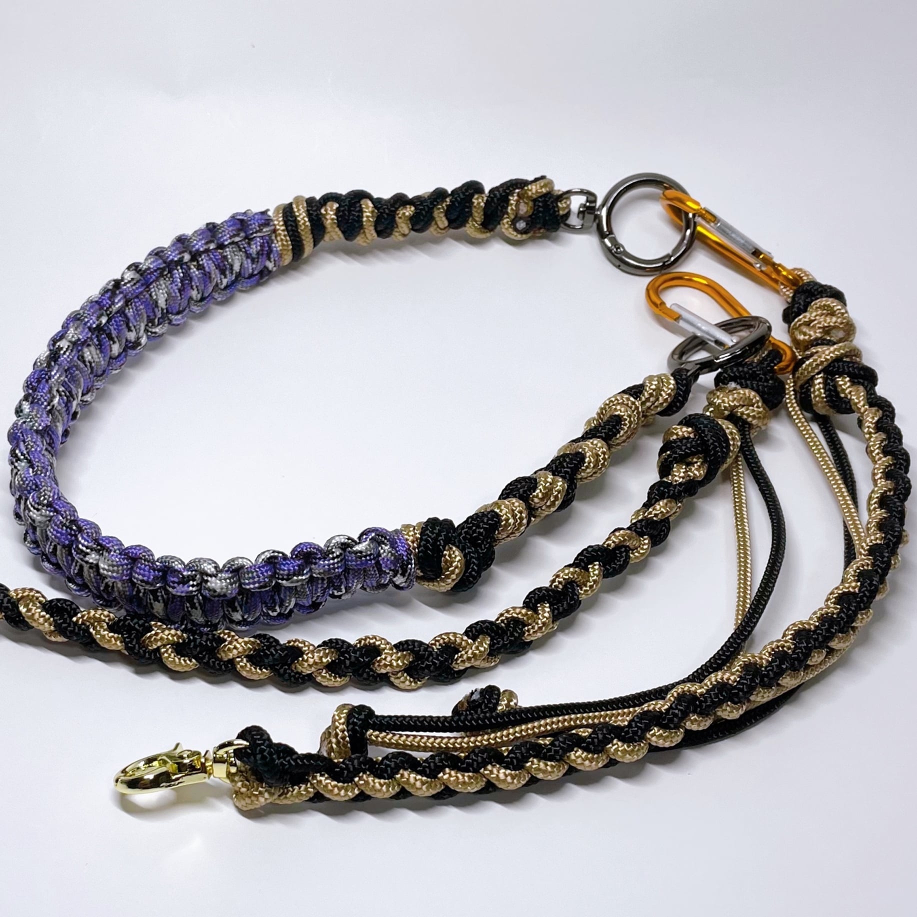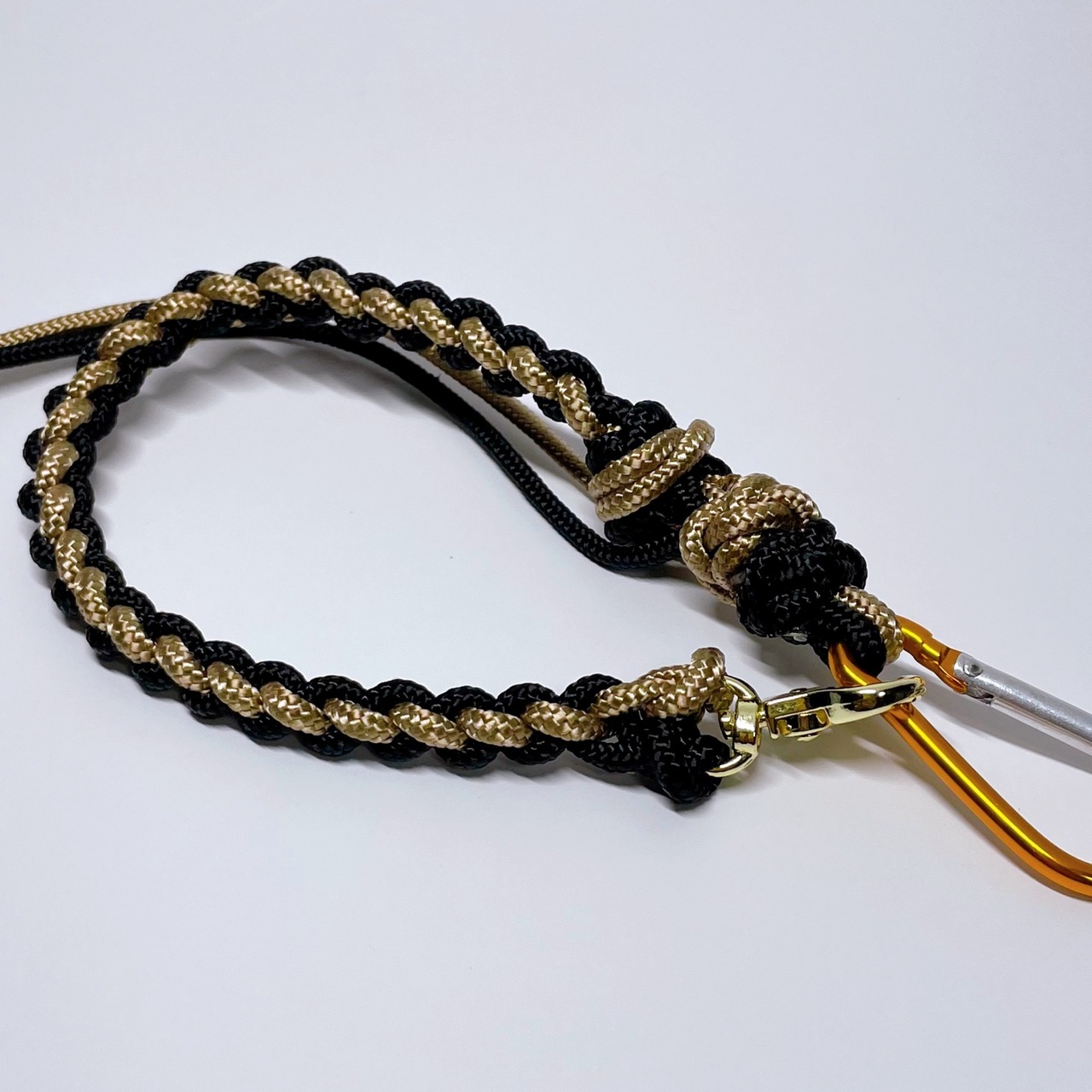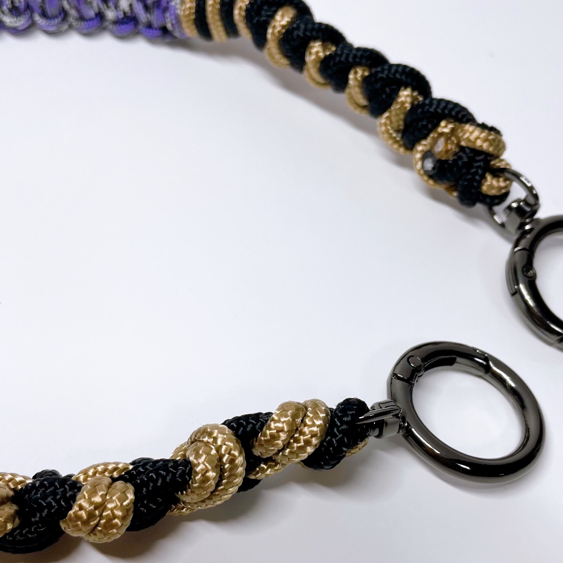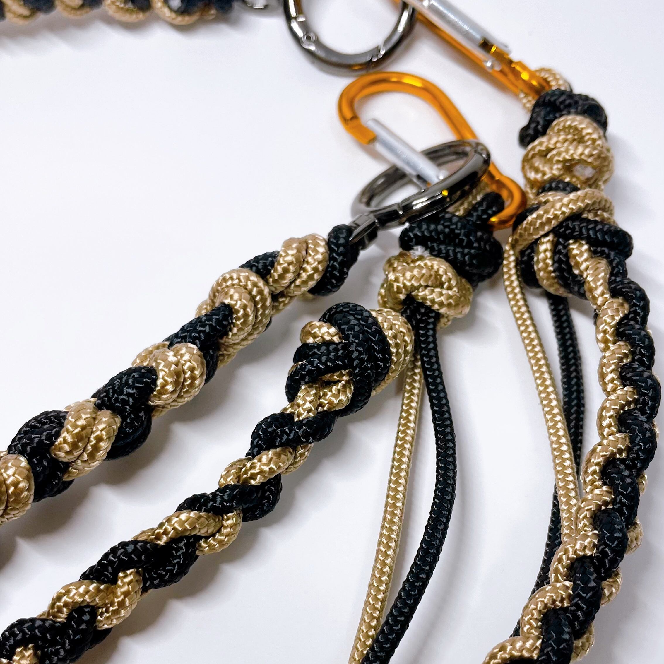 【1点もの】3JOY|1本でショルダー・ハンド・キーホルダーに変身!カラフルに楽しむパラコード製スマホストラップ | ブラック ベージュ