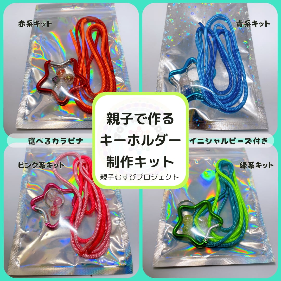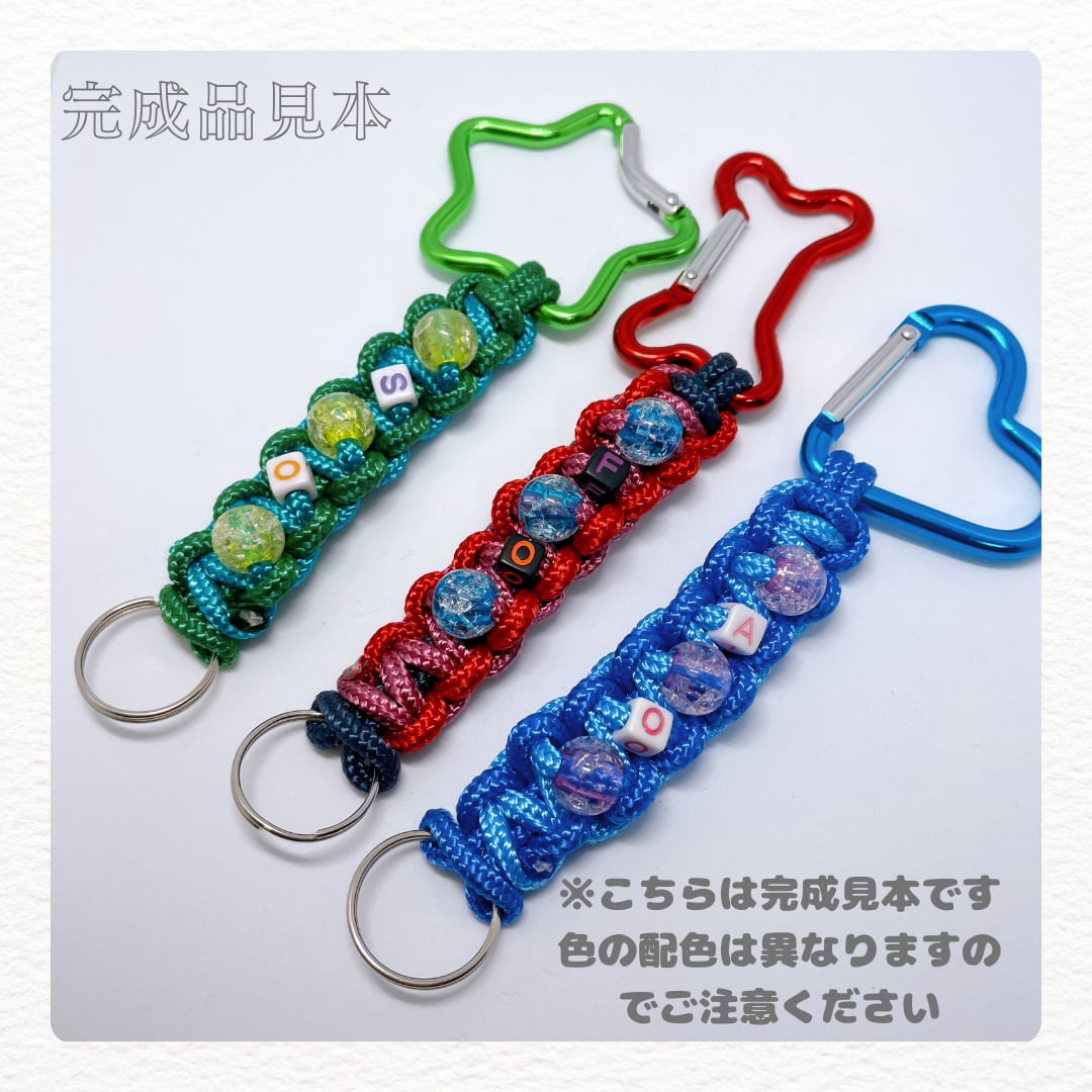 【親子むすびプロジェクト】おうち制作KIT|パラコードキーホルダー体験キット|カラー選択・カラビナ選択・イニシャルビーズ付き